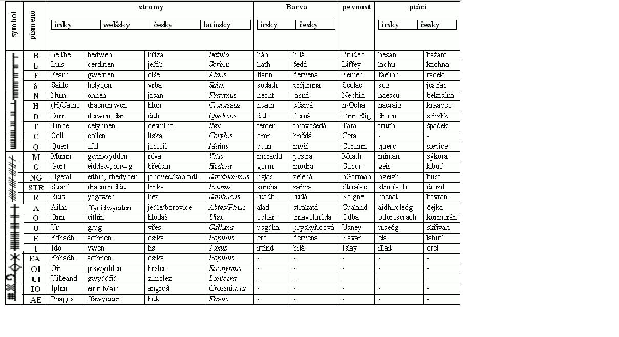 Druidové ovládali techniky předvídání a věštění. Měli svoji tajemnou mysteriózní abecedu - určitou speciální metodu vzájemné komunikace. Jedná se zde o Ogham. Je to ranná Irská abeceda, která se začala užívat v době 600 let před naším letopočtem. Písmena se řadila do pěti skupin po pěti písmenech......